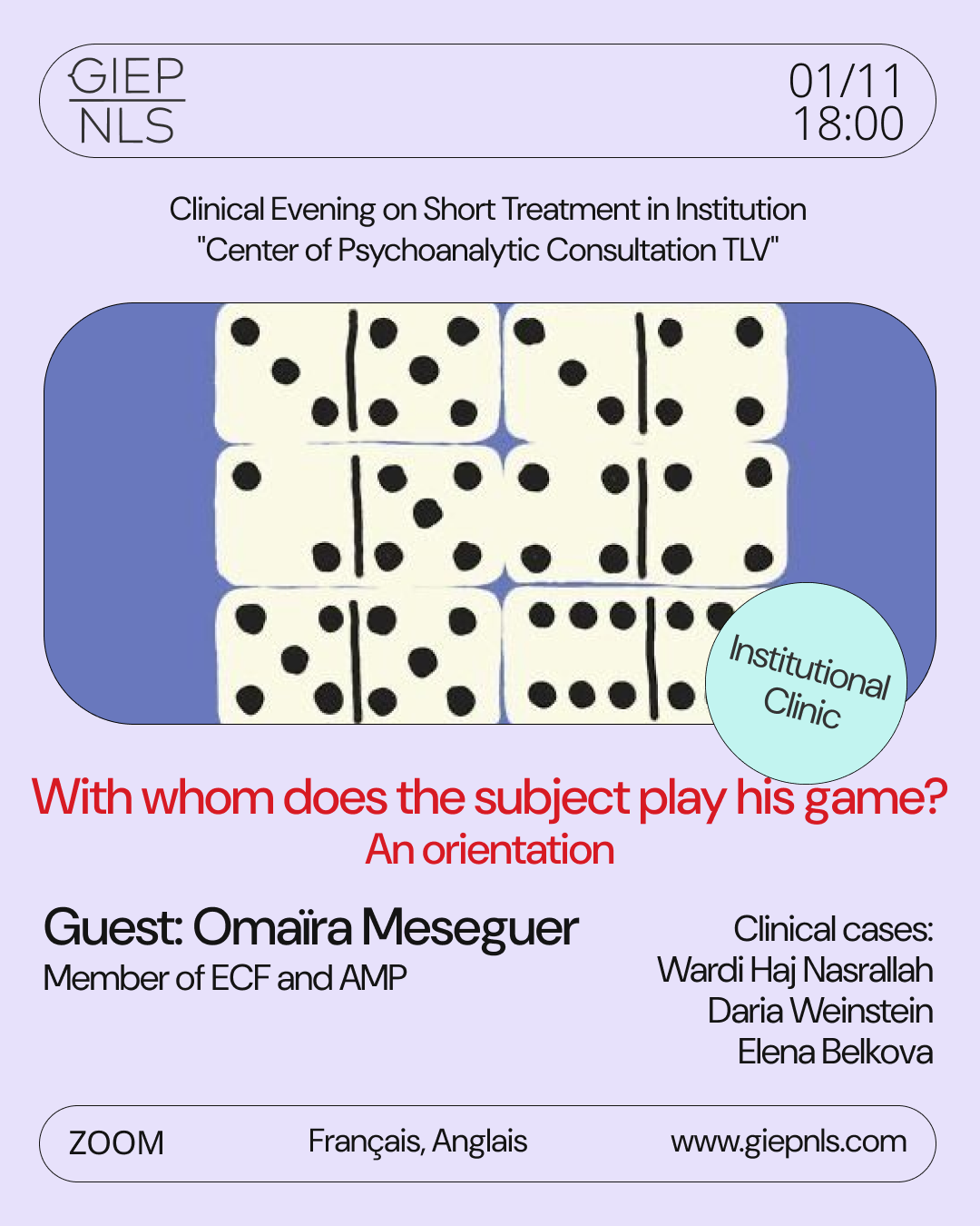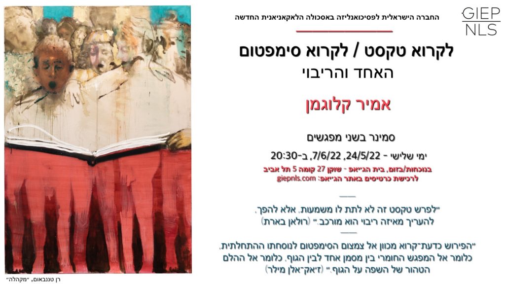 Clinical Evening on Short Treatment in Institution: "Center of Psychoanalytic Consultation TLV"